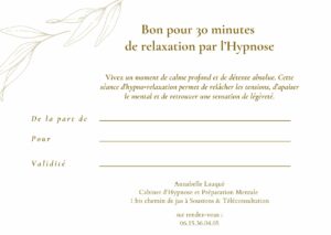 Offrez un moment de calme profond et de détente absolue. Cette séance d’hypno‑relaxation permet de relâcher les tensions, d’apaiser le mental et de retrouver une sensation de légèreté.